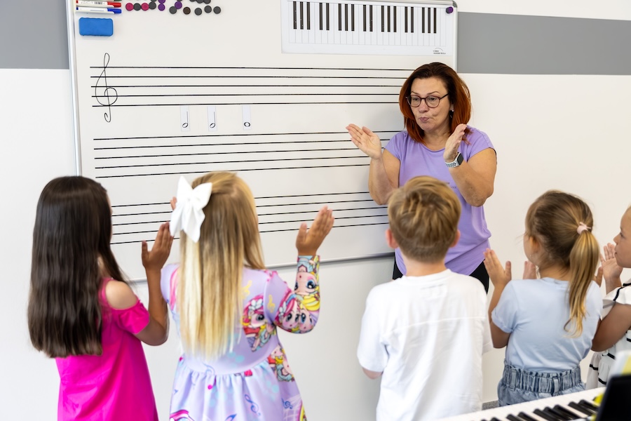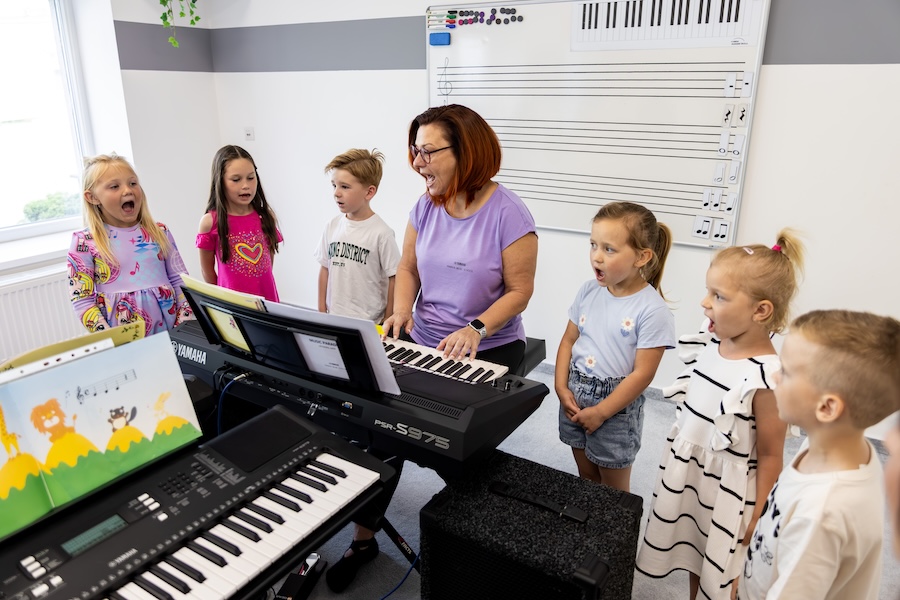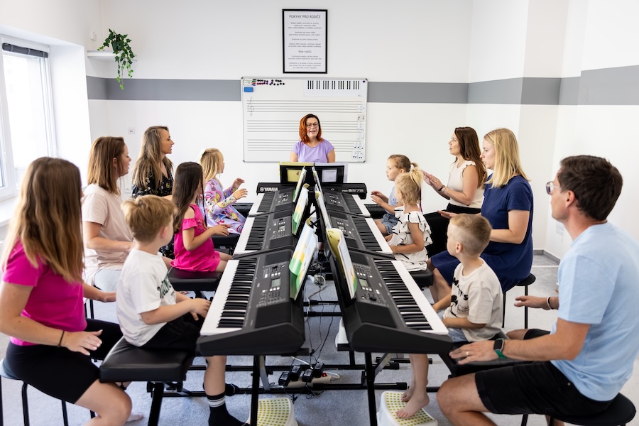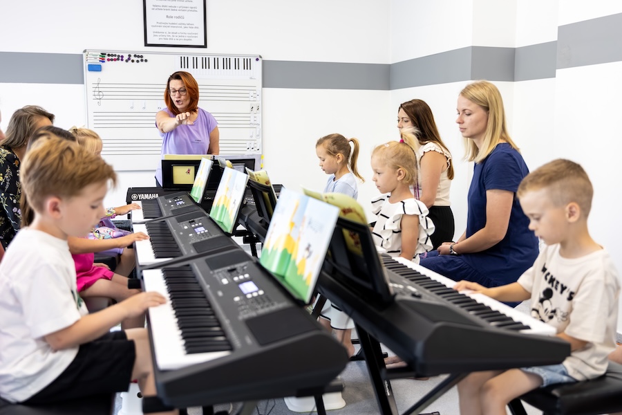 Lekce vedené hravou formou podle metodiky YAMAHA MUSIC SCHOOL propojují hudbu, pohyb a emoce.